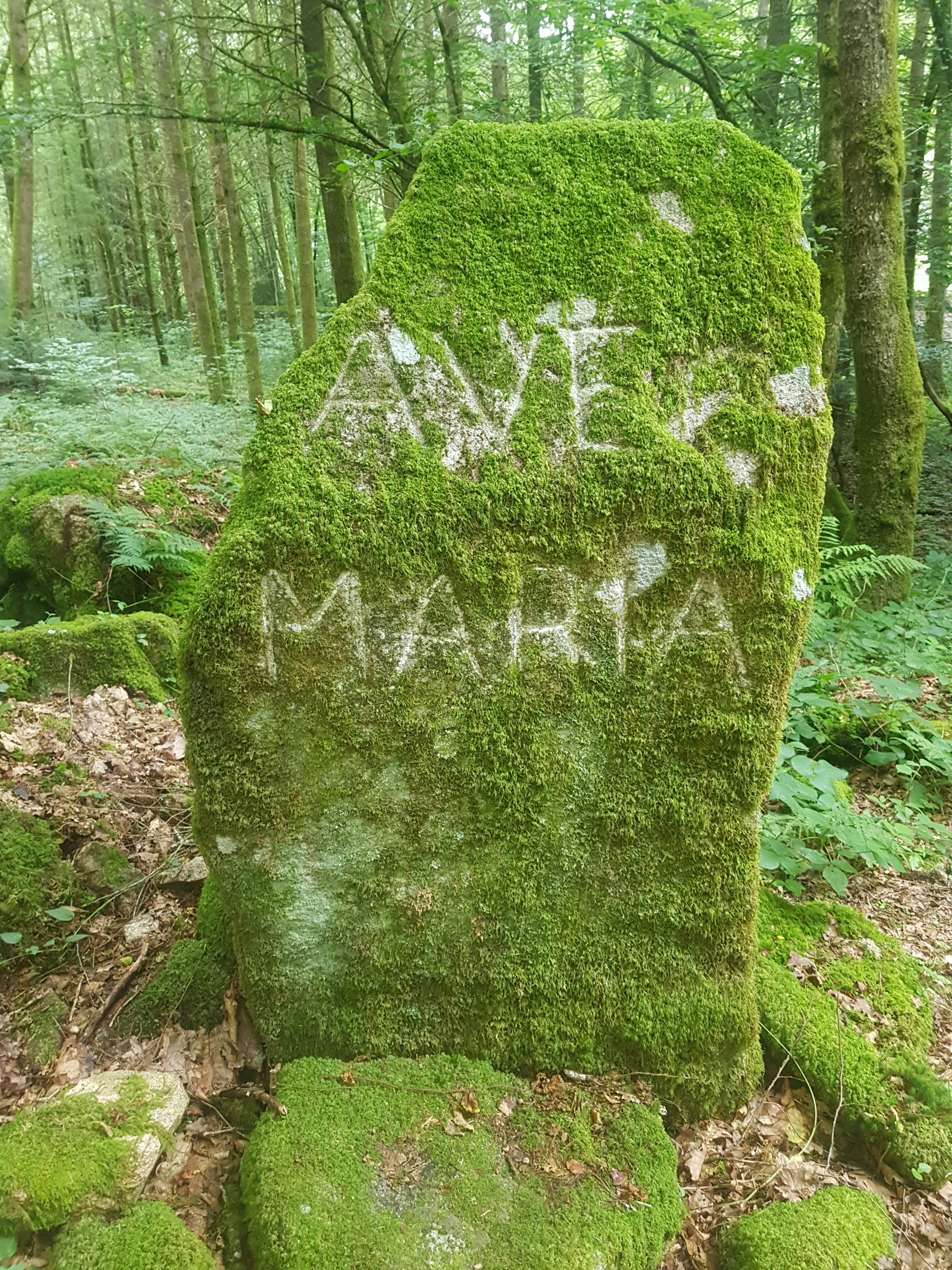 Perdue dans la forêt morvandelle, l'Abbaye bénédictine surplombe un torrent, le Trinquelin. Un chemin de Croix chemine le long de la Clôture. Les différentes stations sont matérialisées par des sculptures en métal. Le Trinquelin ...ne serait ce pas un des fromages fabriqués à la ferme de l'Abbaye et vendus à la boutique? La fascinante fresque qui orne la voûte d'une des entrées de l'Abbaye cache dans ses entrelacs un mouton à pleins d'yeux !!!! En animal légendaire ... Juste avant de quitter ce vallon, (au niveau du parking) un passage par la Pierre qui Vire, surmontée de la statue de la Vierge Marie est incontournable. Cette Pierre a donné son nom à ce lieu. En Morvan il se murmure qu'une wouivre s'y terre. La Pierre vire chaque nuit de Noël, libérant le Dragon ...